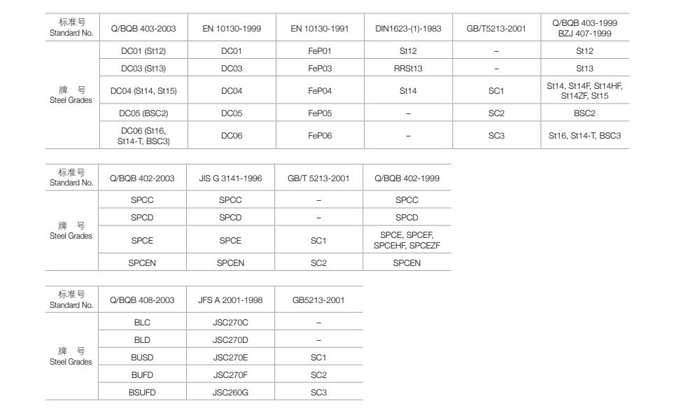 深沖壓用:具有比沖壓級更大的延展性,更為均勻的性能;適用于制造深沖壓成型及復雜變形的零部件 DC04, SPCE, BUSD