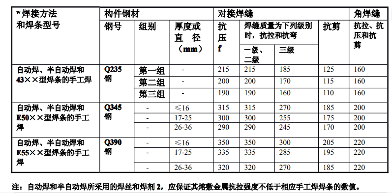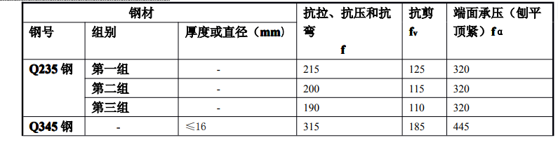 Q235鋼材的強度設計值和焊縫的強度設計值
