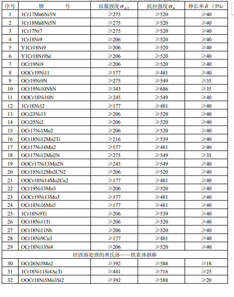 表4GB1220-92《不銹耐酸鋼棒》對不銹鋼棒的性能規定
