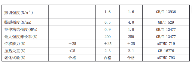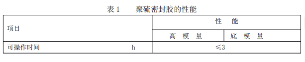 按我國(guó)標(biāo)準(zhǔn),聚硫密封膠性能應(yīng)符合表 1 的要求