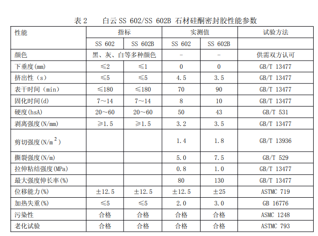 其中 SS 602B 的位移能力大于或等于± 25%,達(dá)到幕墻用耐侯密封膠要求,并不會(huì)對(duì)石材造成污染。