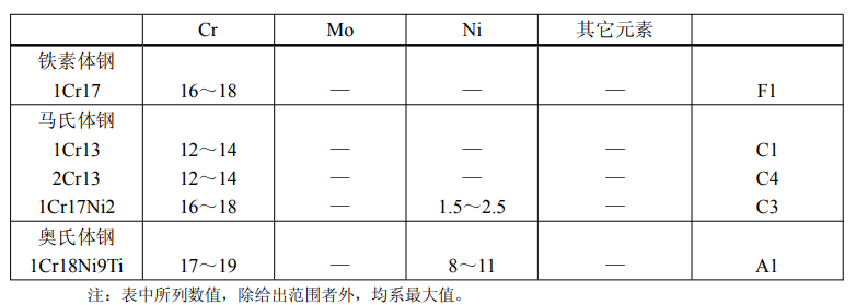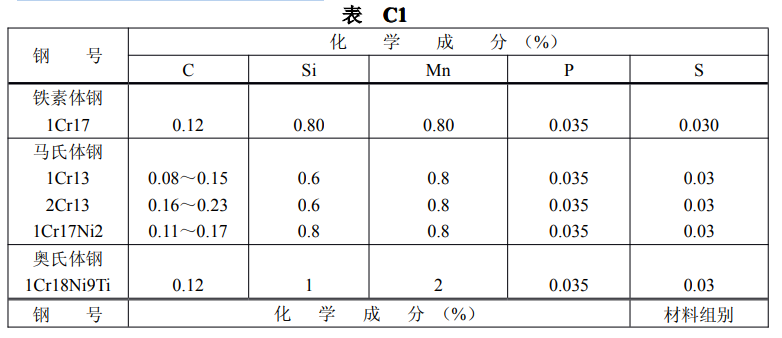 C.1 本附錄給出了可用于緊固件的不銹鋼材料牌號及化學成分,供設計和生產(chǎn)中參考。